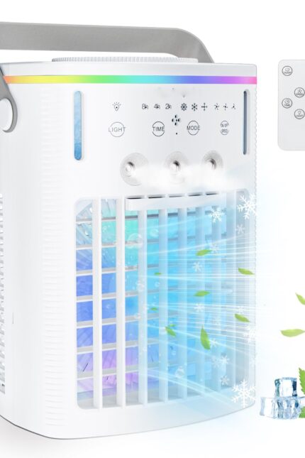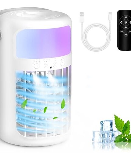 Be the first to review “Mini Air Cooler Fan with LED Light, 3 Speed Modes & Timer, Portable Desktop Cooling Fan (Blue)” Cancel reply