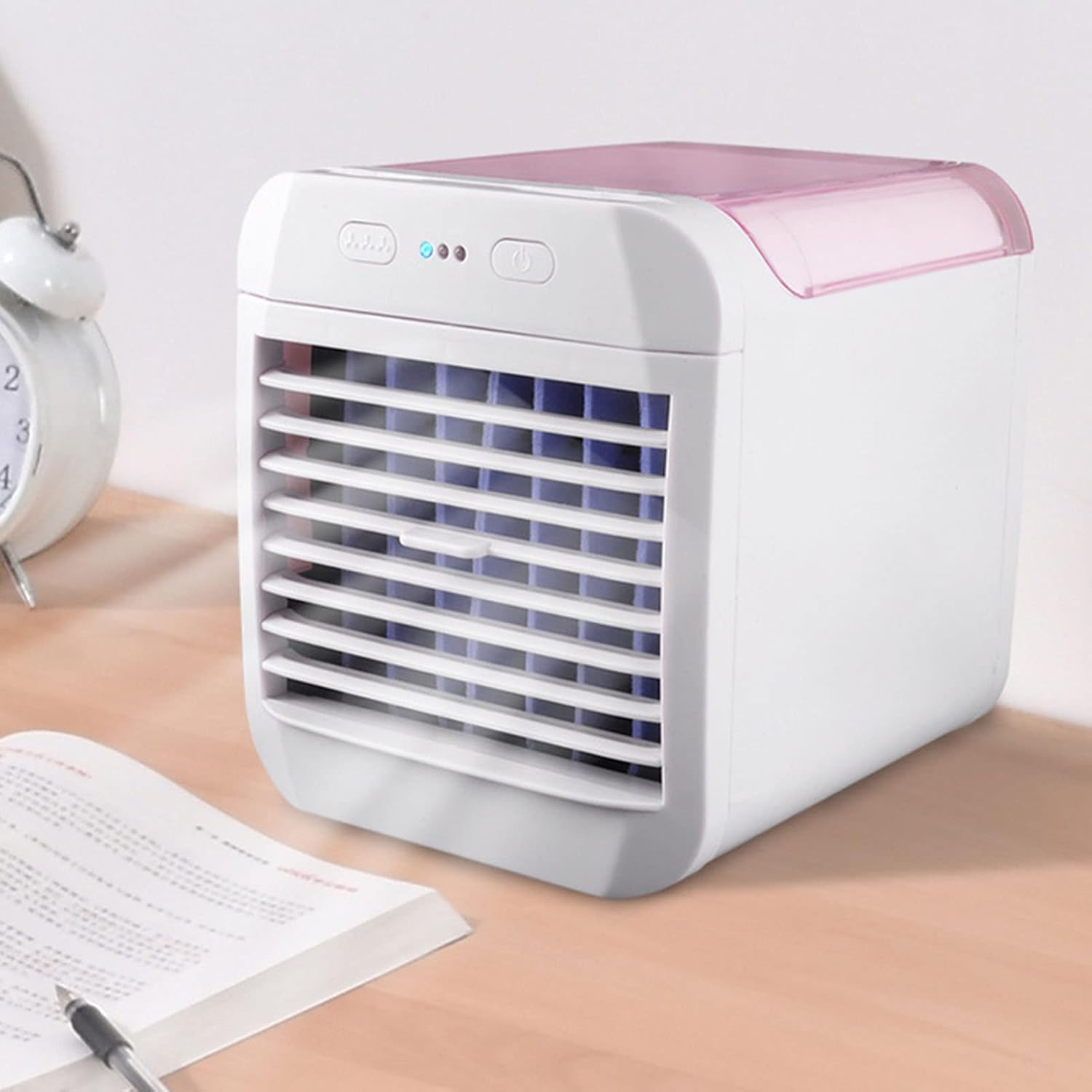 This USB-powered desktop air cooler is energy-efficient and easy to use—simply plug it into a laptop, power bank, or adapter. The soft pink design adds a cute and modern touch to your home or office setup. Compact, lightweight, and portable, this Mini Cooling Fan with Humidifier is a practical solution for personal cooling anytime, anywhere.