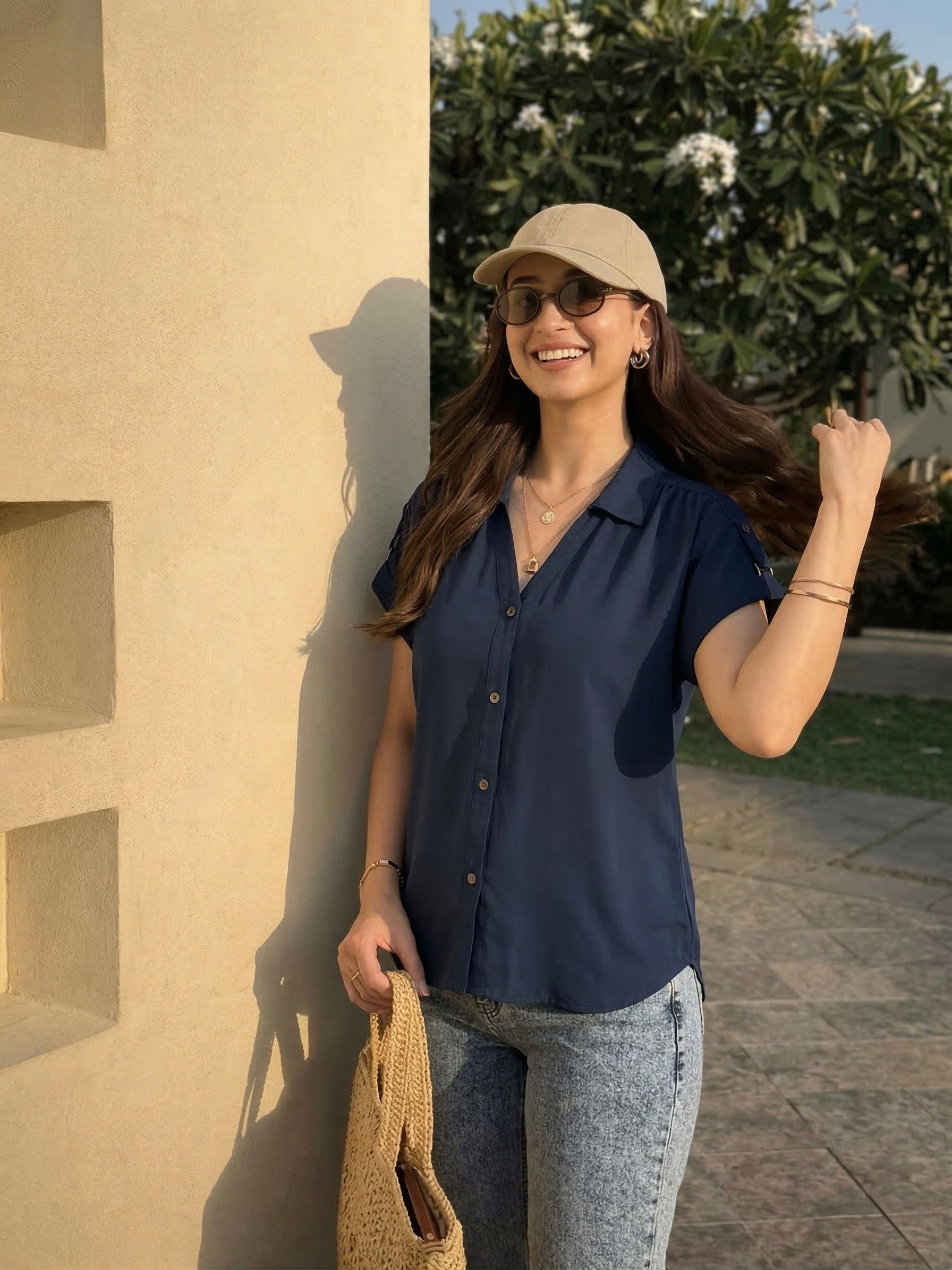 The Navy Blue Crepe Casual Wear Shirt for Women is a perfect blend of simplicity, comfort, and timeless style. Made from lightweight crepe fabric, this plain navy blue shirt offers a soft and breathable feel, making it ideal for everyday wear. Its minimal design gives it a clean and elegant look that works well for casual outings, office wear, or relaxed day-to-day styling. The versatile navy blue shade adds a sophisticated touch while remaining easy to pair with different bottoms, making it a must-have wardrobe essential for women who love effortless fashion.
