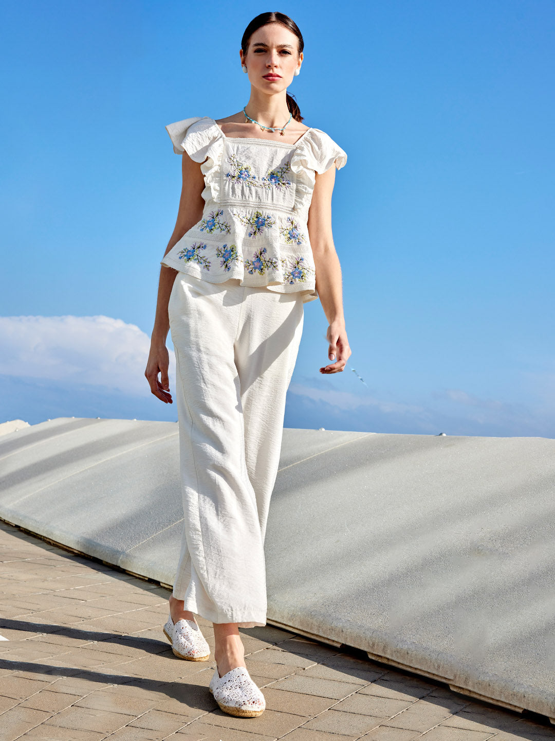Breeze through any day in style with this off-white co-ord set, featuring a floral print top and straight trousers for a polished yet effortlessly fresh look.