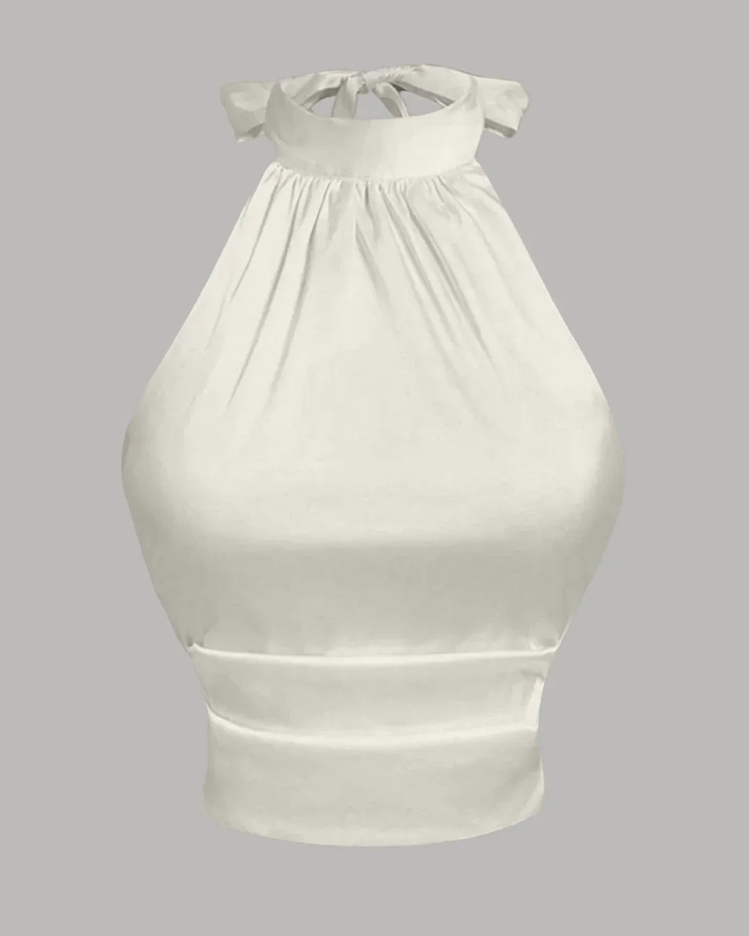 Off-White Satin Halter Neck Bow Detail Elegant Top
