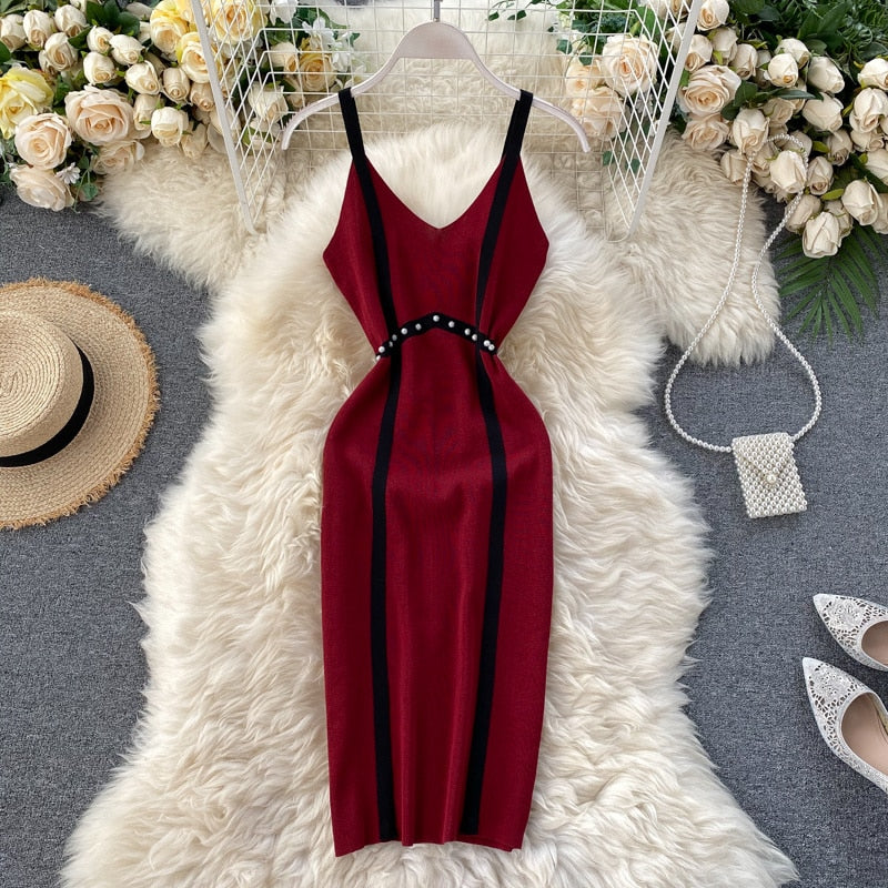 Express yourself in style with this effortlessly cool midi dress. The knitted fabric combine with spaghetti straps and beads is sure to impress. The timeless style is versatile enough to wear for any occasion. Make the most of the season by wearing this casual dress for casual outings and for comfortable days at the office