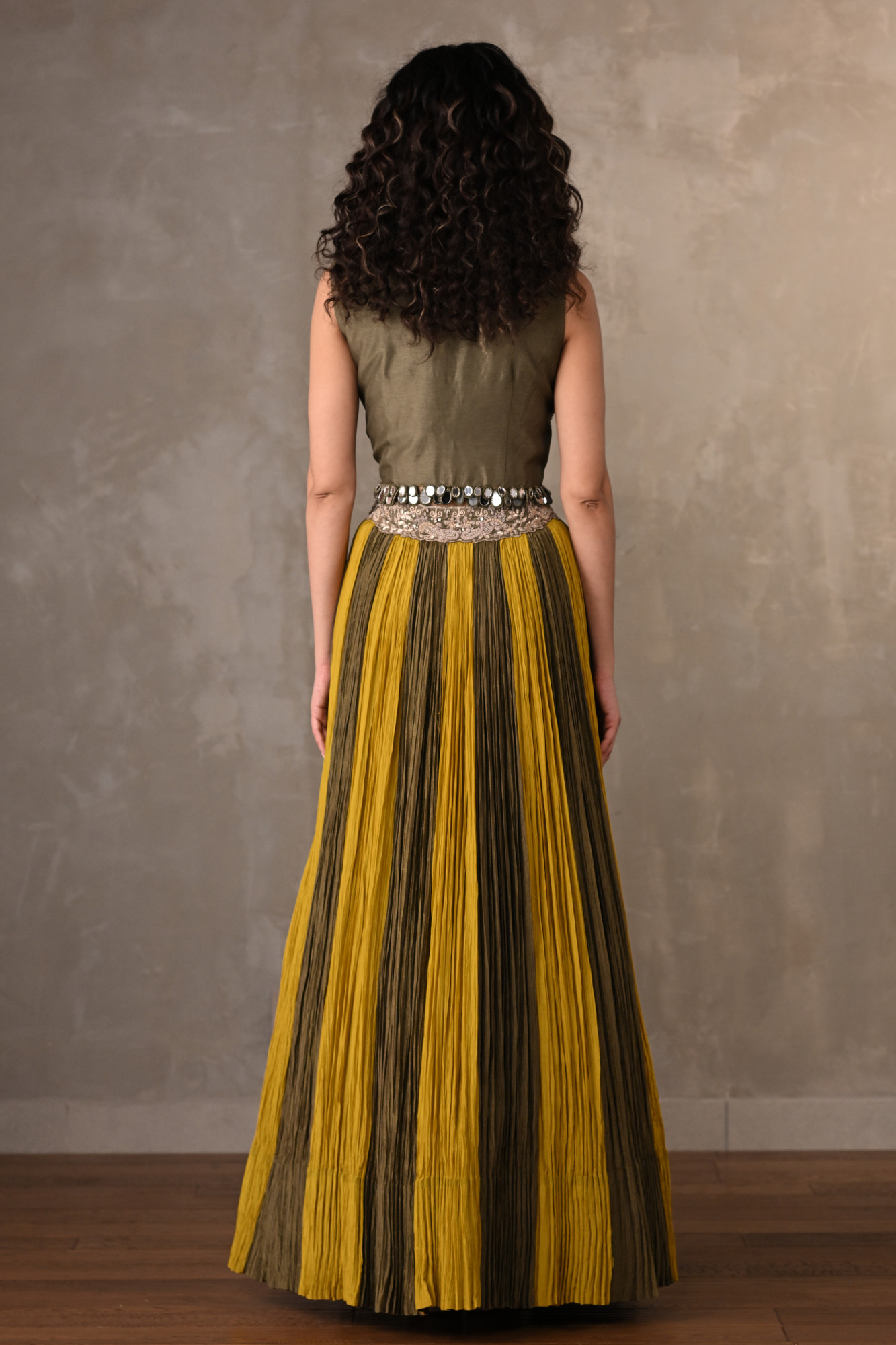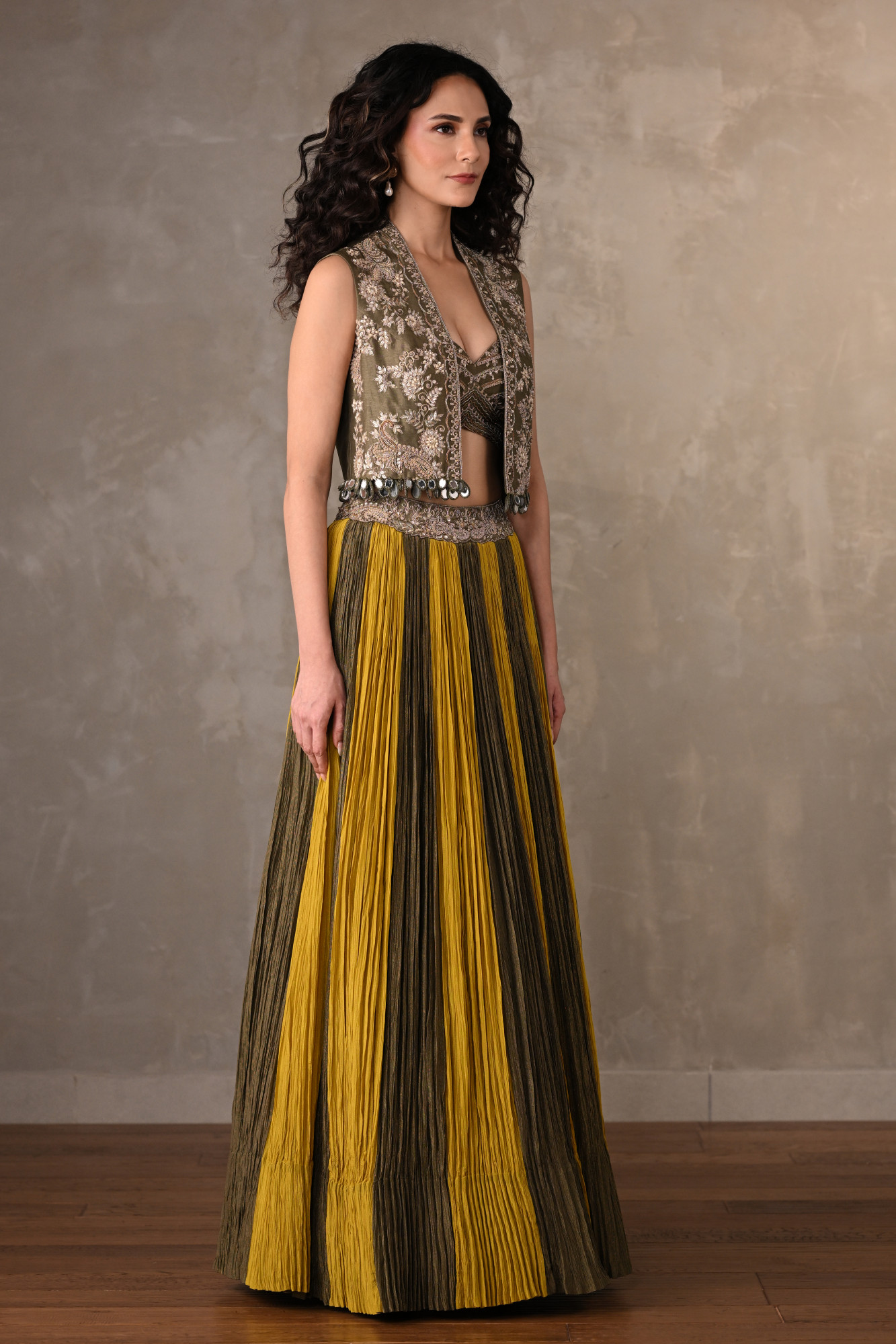 Celebrate joyous moments in style with this elegant Panelled Lehenga Choli, designed especially for mehndi and special occasions. Crafted with a luxurious finish, the panelled lehenga offers a beautiful flare and graceful movement that enhances its festive appeal.