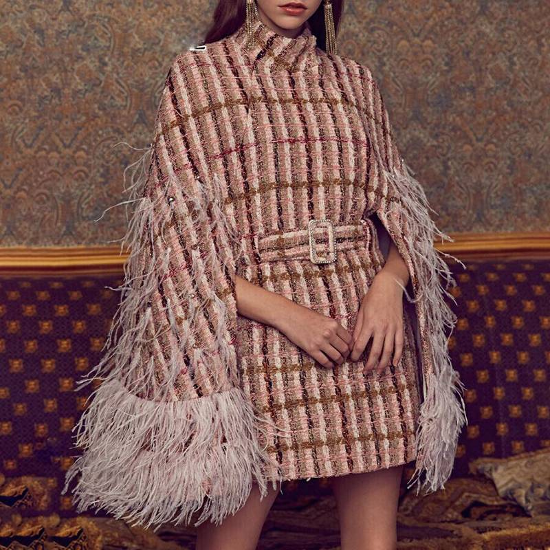 Clothing Length: Long Type: Loose Gender: Women Collar: Turtleneck Closure Type: Covered Button Item Type: Outerwear & Coats Style: Casual Sleeve Length(cm): Full Sleeve Style: Regular Thickness: Standard Hooded: No Outerwear Type: Jackets Material: Cotton Material: Polyester Decoration: Feathers Decoration: Sashes Decoration: Diamonds Pattern Type: Plaid