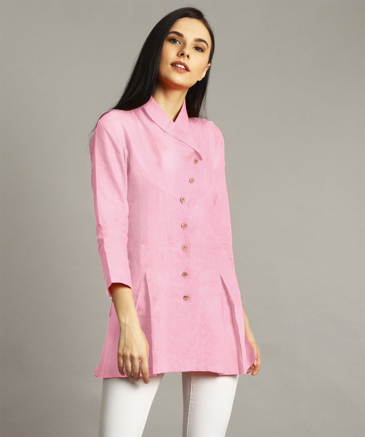 Be the first to review “Plus Size Baby Pink Wrap Collar Linen Tunic Top for Women Casual Wear” Cancel reply