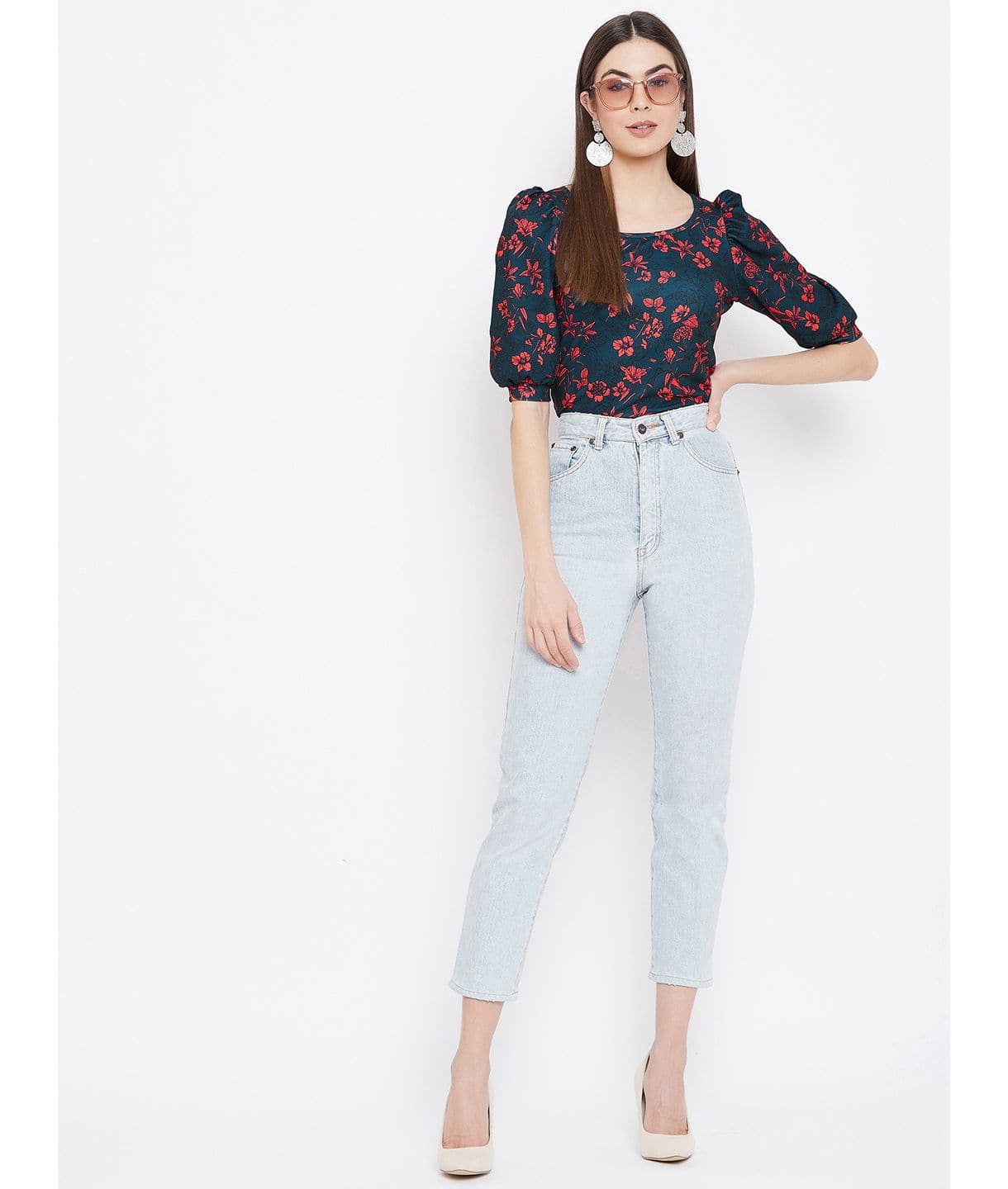 Plus Size Cotton Floral Stretchable Puff Sleeve Top for Women Casual Wear