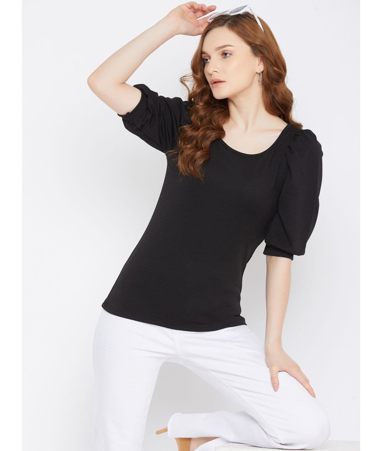 Plus Size Cotton Solid Stretchable Puff Sleeve Top for Women Casual Wear