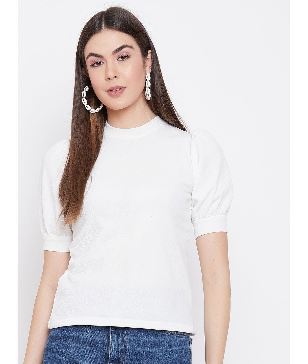 Plus Size Cotton Solid Stretchable Puff Sleeve Top for Women Casual Wear