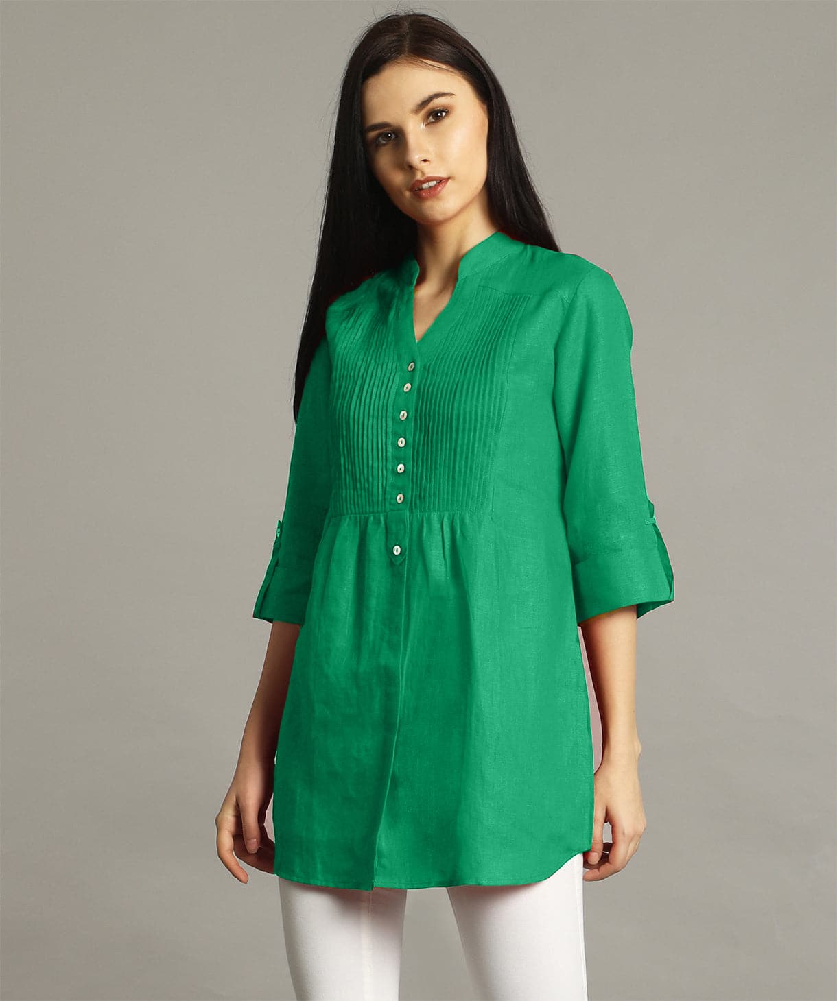 Be the first to review “Plus Size Green Pleated Yoke Roll Up Sleeve Tunic Top for Women Casual Wear” Cancel reply