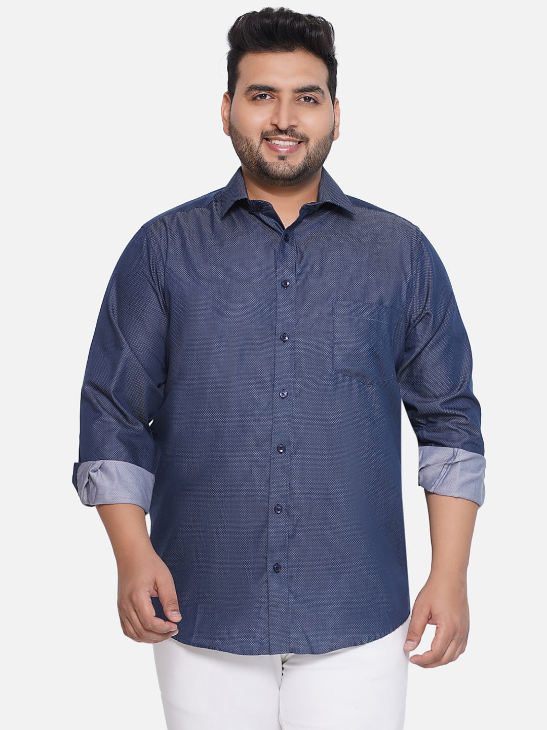 Plus Size Men Regular Fit Blue Solid Cotton Formal Shirt