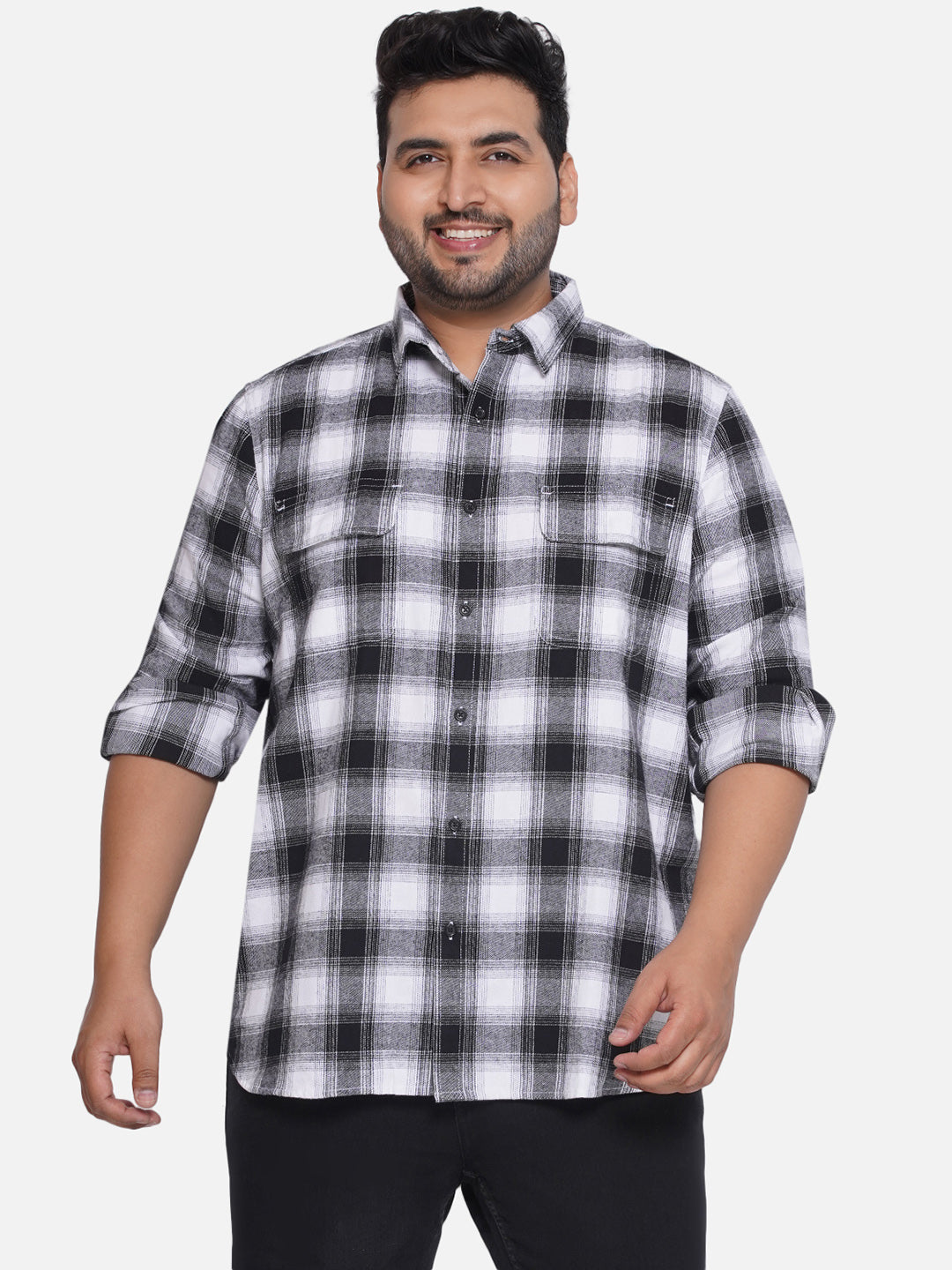 Plus Size Men Regular Fit Brown Checkered Cotton Casual Shirt