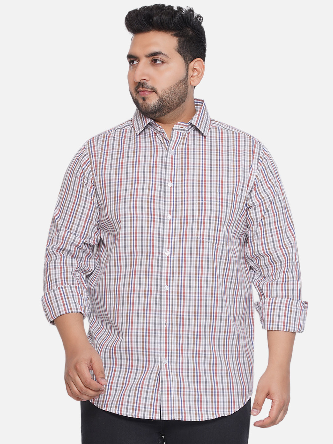 Plus Size Men Regular Fit Grey Checkered Cotton Full Sleeve Shirt