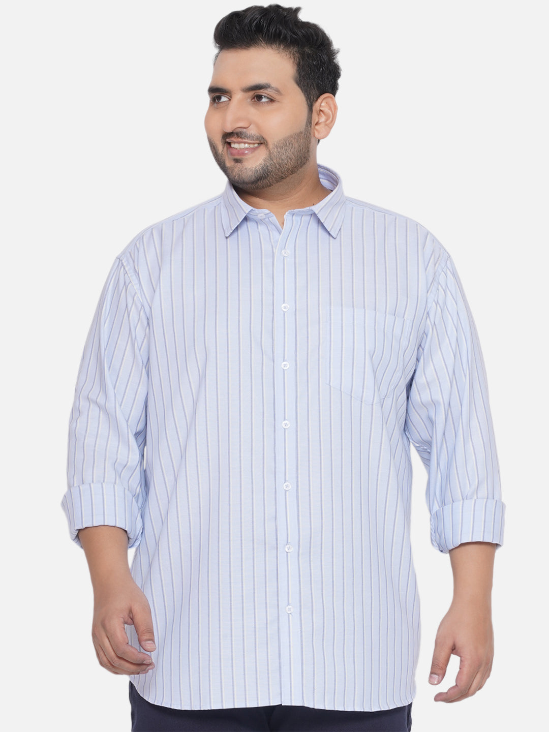 Plus Size Men Regular Fit Egyptian Cotton Sky Blue Striped Formal Shirt