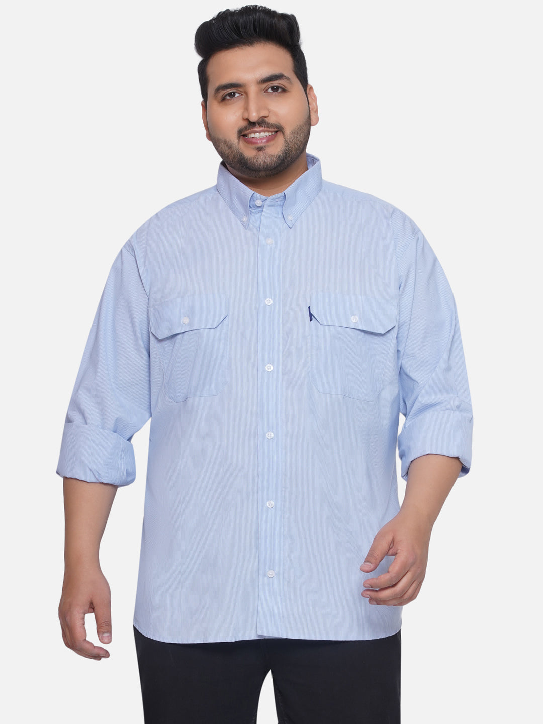 Plus Size Men Regular Fit Blue Striped Cotton Casual Shirt