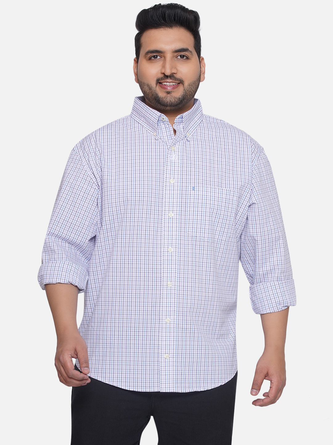 Plus Size Men Regular Fit White Checked Cotton Casual Shirt