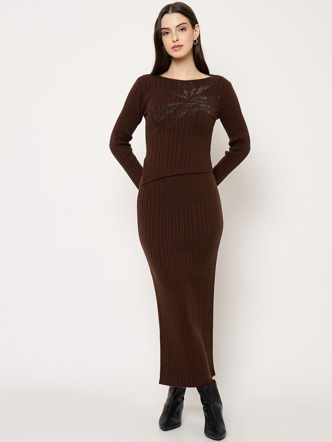 Shimmery Knitted Sweater and Skirt Stylish Winter Co-ord Set for Women