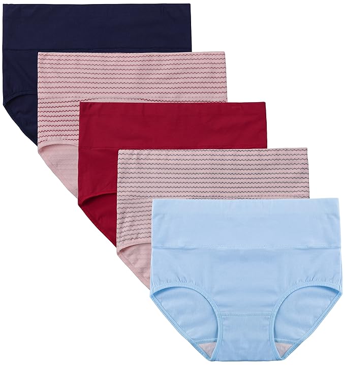 Women’s Breathable Cotton High-Rise Panties with Tummy Control – Pack of 5