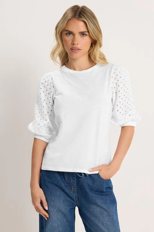 Easy to style and versatile, this broderie puff sleeve top pairs beautifully with jeans, skirts, or shorts for a chic and breezy summer-ready outfit. A perfect choice for women who love elegant details in casual fashion.