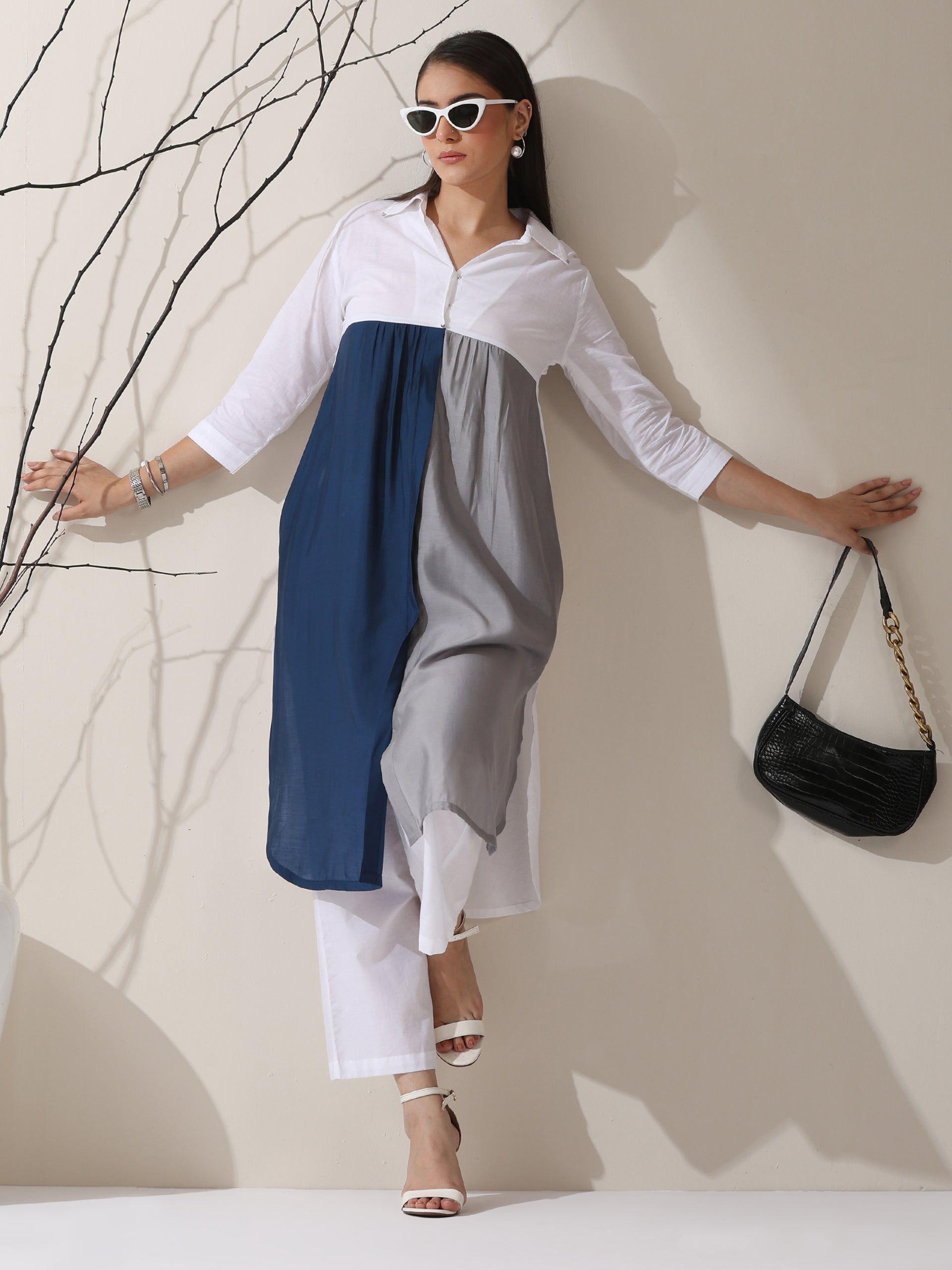 Be the first to review “White Color Block AirSkin Kurta Set with Navy Grey Panels” Cancel reply