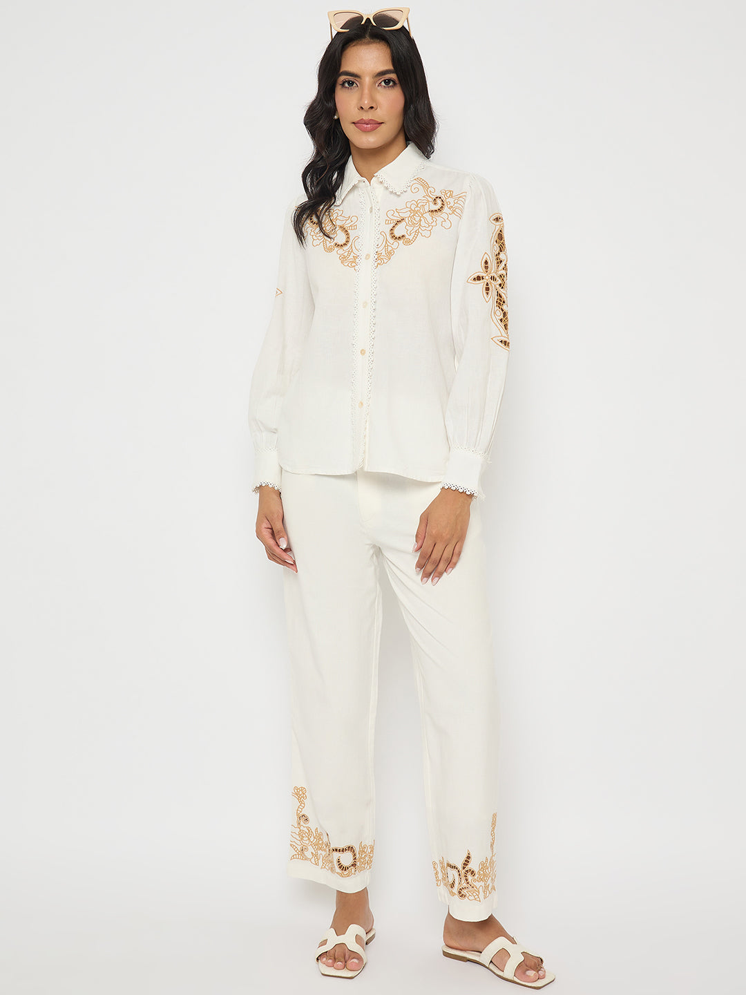 White Dori Embroidered Cotton Blend Elegant Co-ord Set