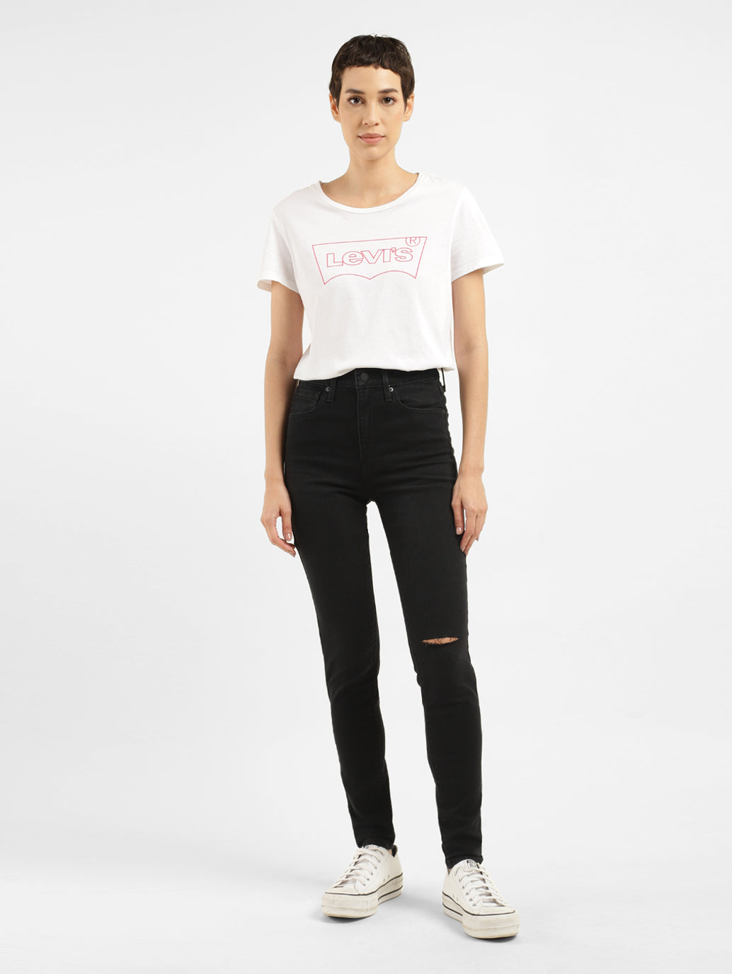 Women Black Mile High Wide Leg Fit High Rise Jeans