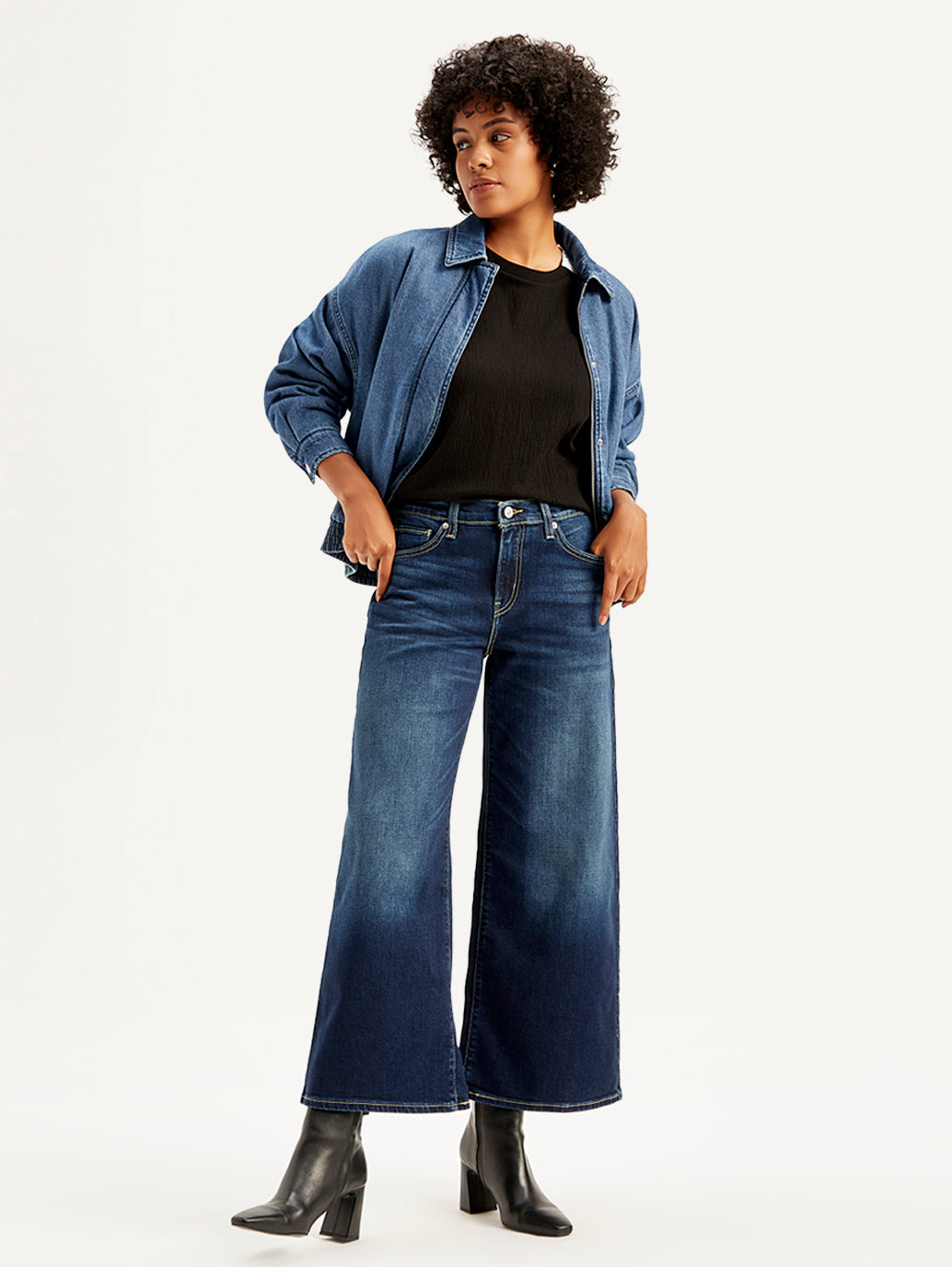 With a figure-flattering mid rise silhouette and plenty of adaptable pockets, Movel’s improves denim style! These 94 baggy wide leg indigo Jeans feature a flattering waistband. The baggy fit style is just right for going out or staying in!