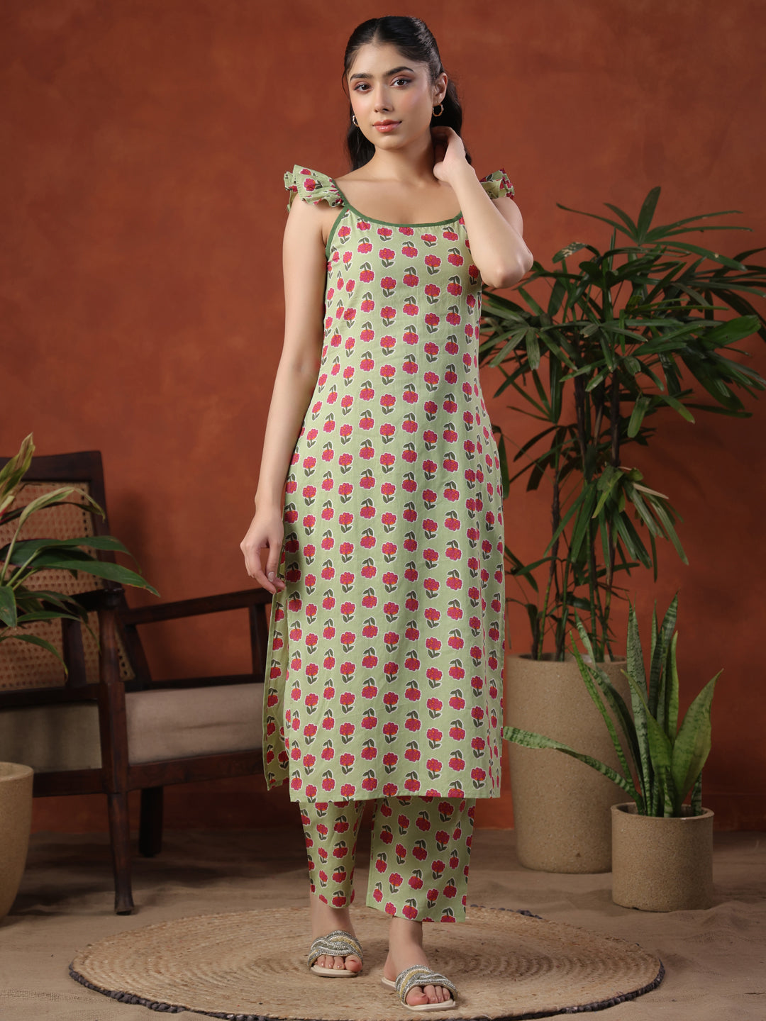 Women’s Printed Cotton Kurta Pant Set Everyday Wear