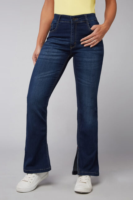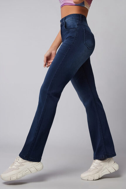 Navy Blue Mid Rise Bootcut Stretch Denim Jeans with Clean Look Design
