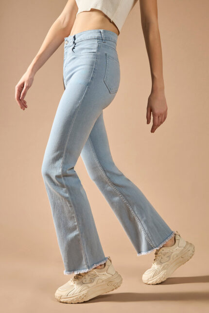 Light Blue High Rise Bootcut Stretch Denim Jeans with Modern Appeal