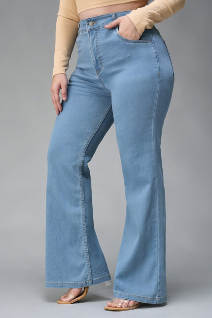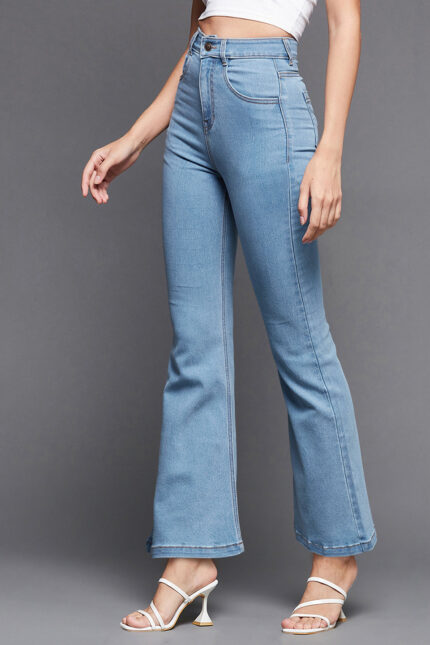 Light Blue Bell Bottom Bootcut High Rise Denim Jeans with Flowing Fit