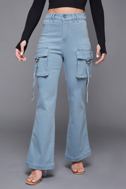 Be the first to review “Women Turquoise Wide Leg High Rise Stretch Denim Cargo Pants” Cancel reply
