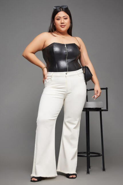 White Bell Bottom Bootcut High Rise Stretch Denim Jeans with Elegant Flow