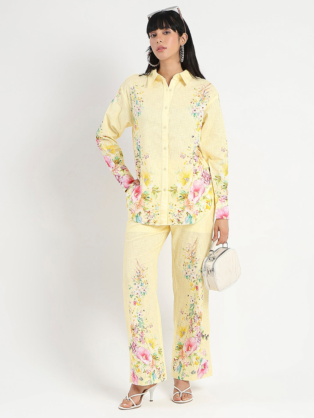 Yellow Printed Cotton Shirt with Trousers Co-ord Set